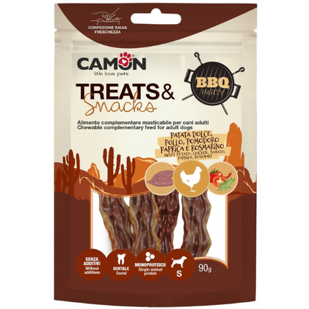 Delicious sweet potato bacon with chicken, a chewable complementary food for adult dogs.
