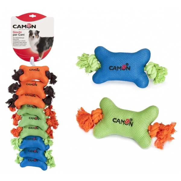 The ' Bone Rope for Dogs Camon is a magnificent entertaining game for your four-legged friend. Interaction with your pet is essential and play is an extremely important part of it. This soft bone that is characterized by two rope ends on the sides , will allow you to spend many happy hours with him, stimulating him to healthy movement. Plus you will see what a surprise when it bites the bone! Each bite will produce a sound that will amuse him a lot. BONE ROPE FOR DOGS CAMON CHARACTERISTICS: * resistant to traction and bite; * available in 3 different colors; * it makes a sound when pressed.