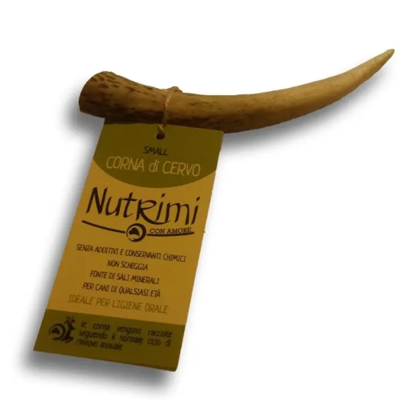 The product is 100% natural , it helps dental hygiene thanks to its nutrients and minerals, suitable for dogs of any age. They are not sticky, they are odorless, and can be chewed even after a prolonged break without causing stains. Its average duration is 5-15 days (depending on the dog). The horns are made up of about 54% calcium , which is great for the bones. In addition, 44% is organic matter - mainly protein compounds in which rich minerals are incorporated.