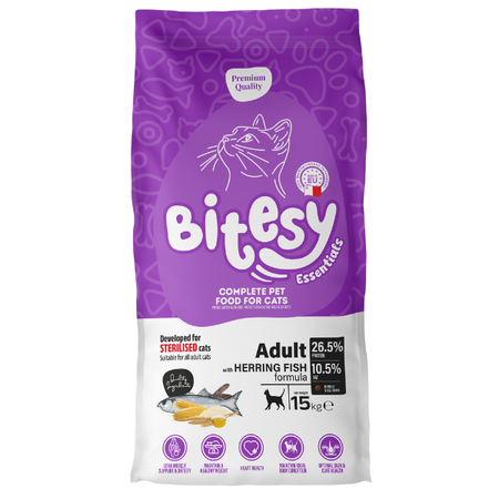 Bitesy Essentials Sterilised Adult Cat – Herring Formula (15kg)