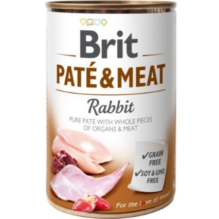 Spoil your dog with Brit Paté & Meat Rabbit – a flavorful mix of smooth paté and tender rabbit pieces, including nutritious organs. This grain-free, soy-free, and GMO-free recipe is perfect for dogs with food sensitivities, offering a highly digestible, protein-rich meal they'll love.