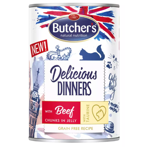 Butcher’s Delicious Dinners Cat with beef chunks in jelly 400g.