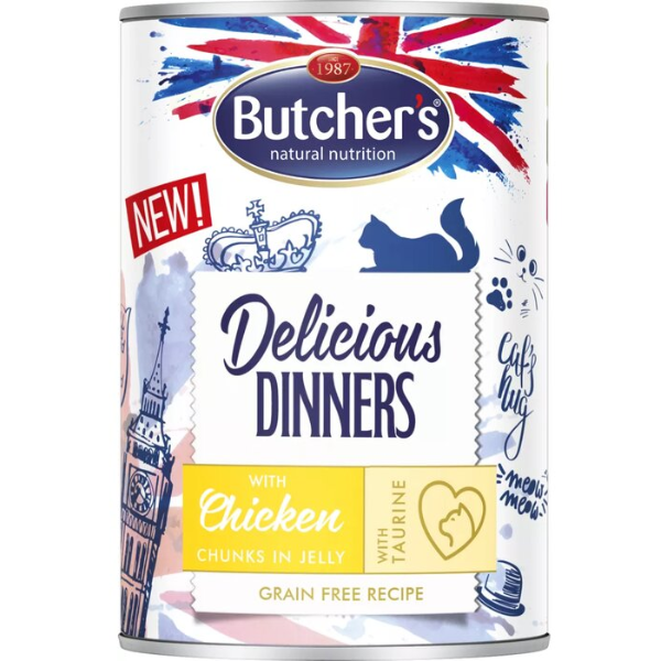 Butcher’s Delicious Dinners Cat with chicken chunks in jelly 400g.