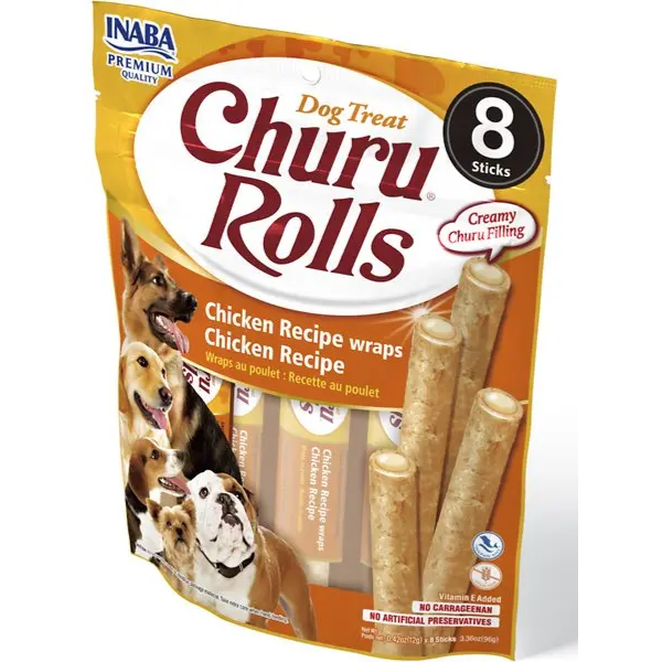 Churu Rolls are soft stick-shaped natural chicken treats seasoned with natural flavors, green tea extract and vitamin E. No grains, preservatives or artificial colors. Each package includes eight individual treat packs to maintain maximum freshness.
