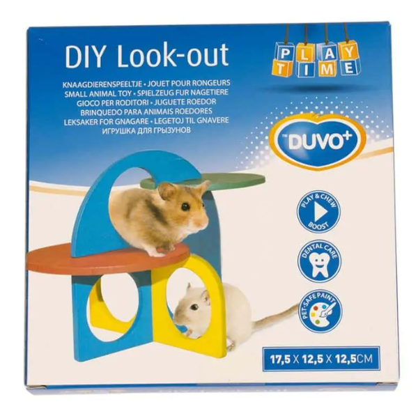 This fun Duvo+ wooden toy is the ultimate gift for your hamster, gerbil or mouse. Ideal for playing, climbing and chewing. Your pet will never be bored again. It is also fun for kids to assemble and it will strengthen their bond with their pet. Wooden toys are also excellent for satisfying your pet's natural chewing instinct as well as helping to keep their teeth clean. Regular chewing keeps tooth growth in check. The play set is painted with animal-friendly paint, making it 100% safe. Easy to assemble. * Wooden toy for hamsters, gerbils or mice * Ideal for playing, climbing and chewing * Prevents boredom * Animal-friendly plant-based paint used * Easy to assemble - fun for children Available pack sizes * EAN 5414365264086 | 14x11cm | mixed colors