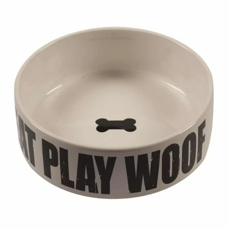 DUVO STONE EAT PLAY WOOF BOWL 17.5CM WHT