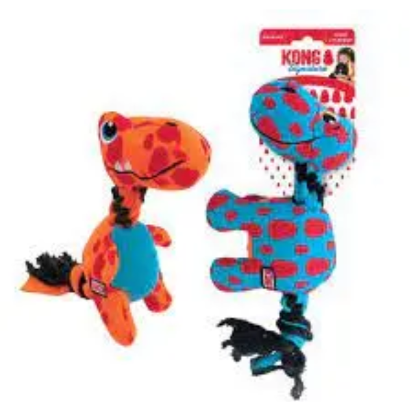 KONG Signature Dynos have a stretchy, strong fleece rope spine from head to tail, boosting their strength during tug-and-shake adventures.