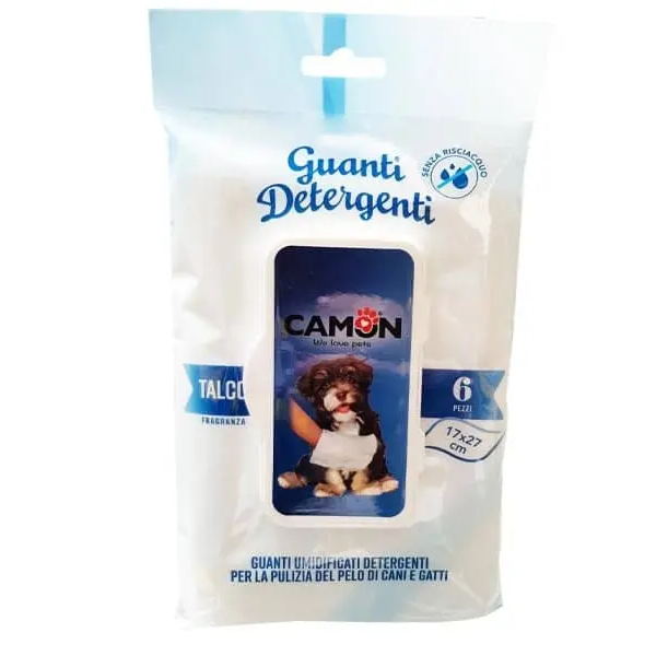 Very practical detergent gloves for your pet, to always keep at hand: at home and on the go, to clean the hair and legs, remove bad smell, clean the muzzle and ears. Formulated with Aloe Vera and Allantoin, they perform a cleansing action on the coat, giving an immediate sensation of delicate freshness. How to use : open the flap, lift the adhesive tab and remove the glove. Close the package tightly after use. Do not use on eyes and mucous membranes. Do not throw the glove in the toilet drain after use, but dispose of it in the appropriate counters. Use gloves within six months of the opening date.
