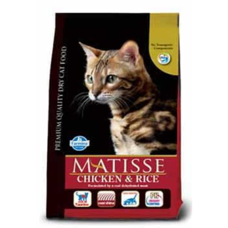 Matisse Chicken & Rice / Salmon & Tuna is a complete and balanced dry food for adult cats, made with highly digestible proteins to support optimal digestion, healthy muscles, and overall wellbeing. Enriched with essential nutrients such as taurine, it promotes heart and vision health, a shiny coat, and balanced daily nutrition. Suitable for everyday feeding of adult cats, including cats with sensitive digestion.