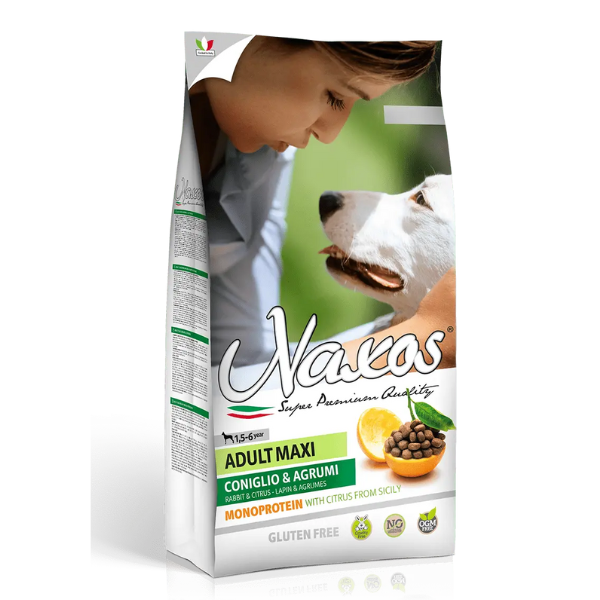 Naxos Adult Maxi – Rabbit & Citrus it is indicated for the maintenance of adult dogs of maxi size. Rabbit meat as the first ingredient on the label is a high biological value protein source, highly digestible and palatable.