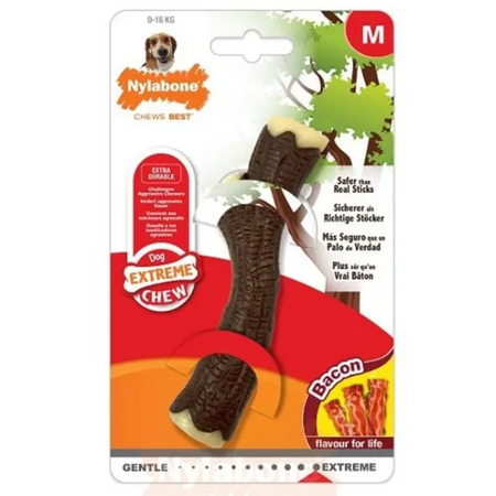 NYLABONE EXTREME CHEW WOODEN STICK BACON MEDIUM