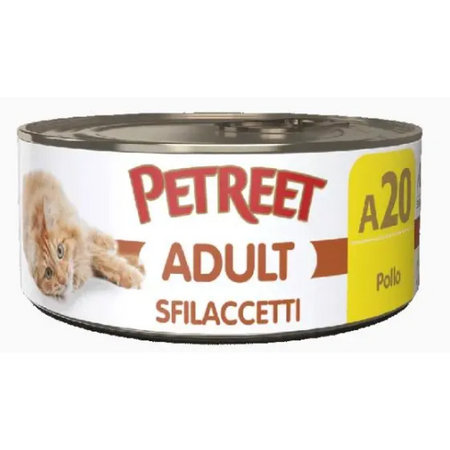 Petreet Natura Chicken Sfilaccetti is a wet food for cats that is characterized by its exclusive and refined flavors.