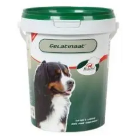 PrimeVal Gelatinaat is composed of essential building blocks for the production of various tissue structures of the musculoskeletal system. It contains the unique collagen hydrolyzate in combination with collagen type II of the highest possible pharmaceutical quality. PrimeVal Gelatinaat promotes the lubrication of the joints by improving the quality of the synovial fluid (synovial fluid) and promotes the construction and regeneration of the cartilage. PrimeVal Gelatinaat also strengthens your dog's ligaments and tendons and ensures that your dog continues to move smoothly, even in old age. Benefits at a glance - prevention of osteoarthritis problems in (large) dog breeds - treatment of osteoarthritis and related joint disorders - treatment of tendon problems / knee ligament ruptures - for a good development of the fetus and maintenance of a good condition of the pregnant bitch.