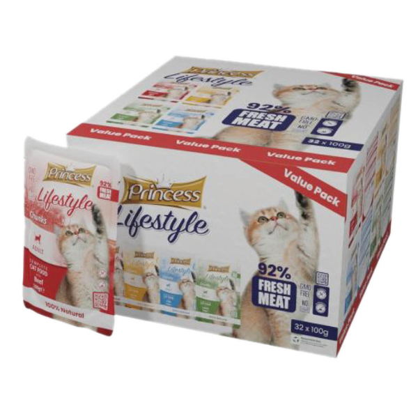 Princess Lifestyle Chunks Cat Food – Value Pack (32 x 100g)
