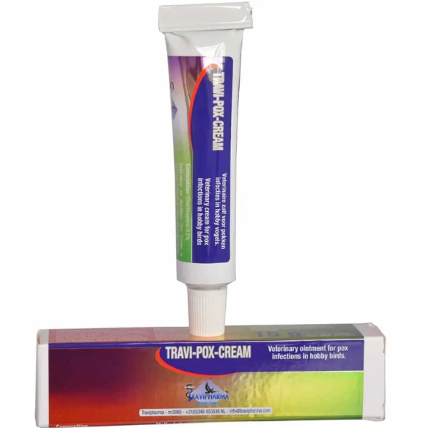 Target animals: * Hobby birds. Indication: * For the treatment of: Pox on skin. Pox Cream is specially developed for the treatment of pox on the skin of bird. Composition * Contains per ml: Chlorhexedine 5 mg Packing * 15 g