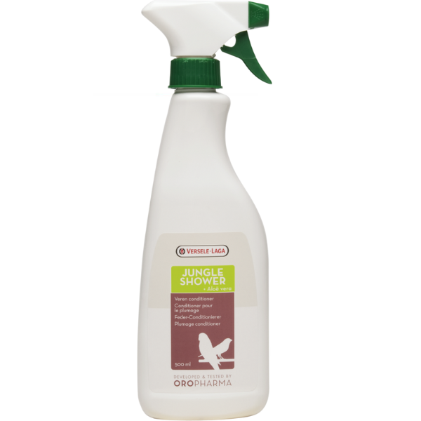 Oropharma Jungle Shower is a spray with aloe vera for glossy plumage and a healthy skin. This care product cleans the feathers, restores the balance of moisture of the skin and feathers, limits the loss of feather dust and helps to keep the skin healthy.