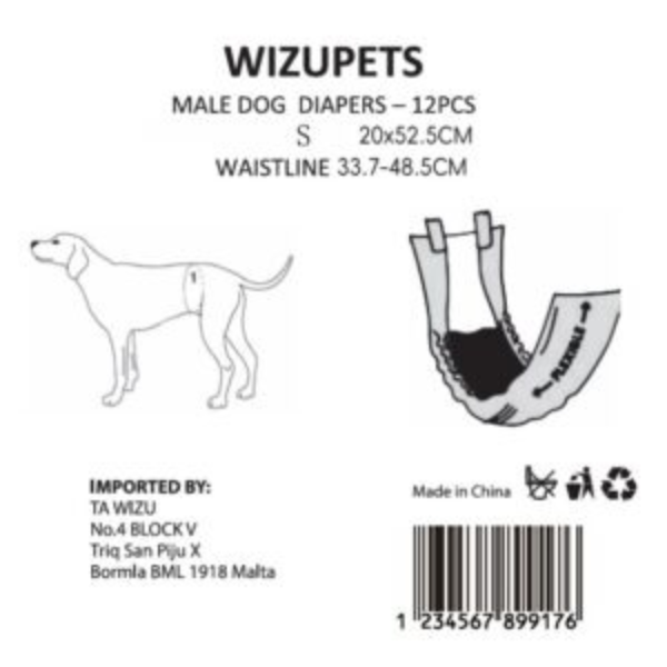 Wizupets Male Small Diapers, x12pcs